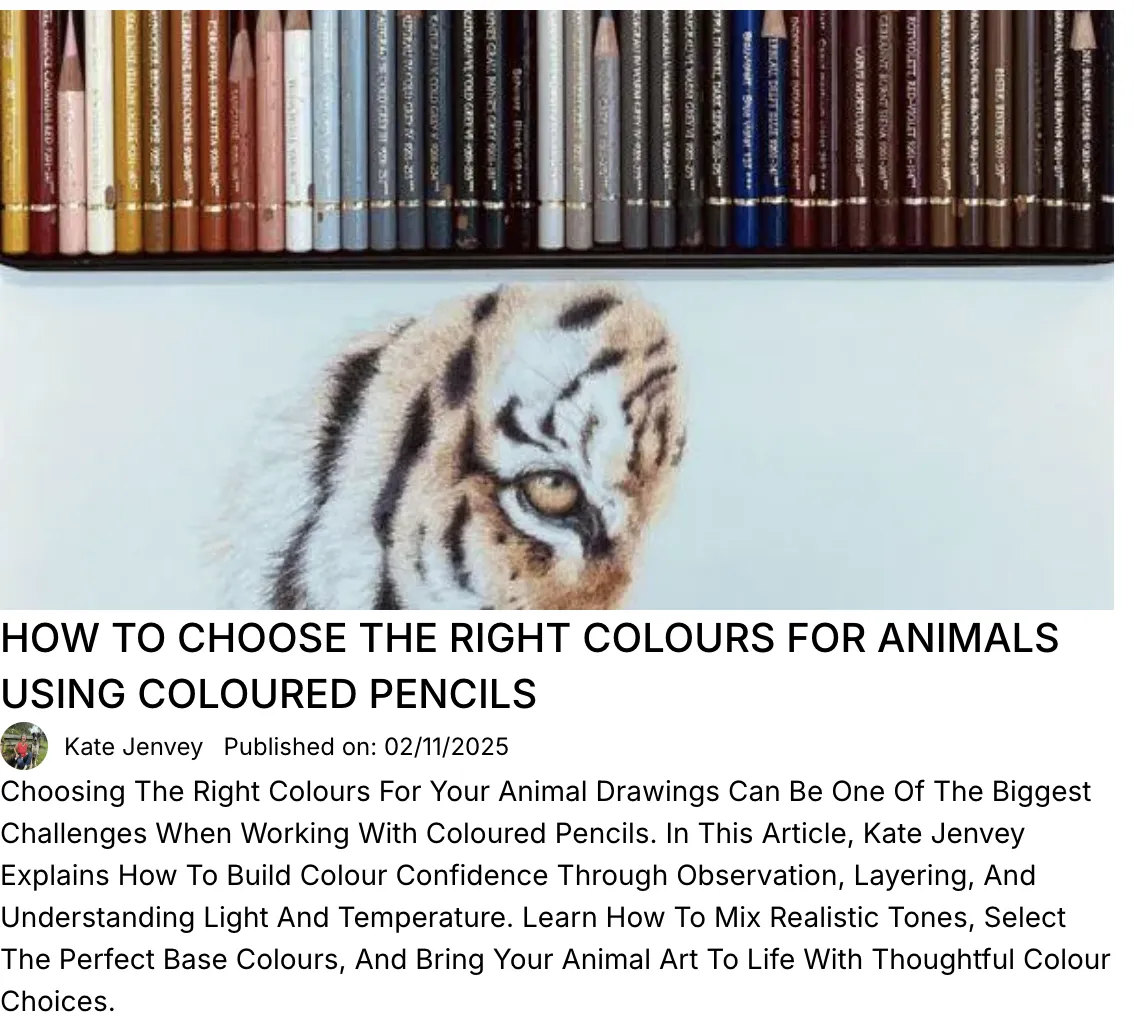 My blog is dedicated to helping aspiring and experienced animal artists build confidence, skill and joy in their drawing practice. Here you’ll find practical tips, thoughtful guidance, and insightful articles on coloured pencil and graphite techniques, artistic mindset, and creative growth.